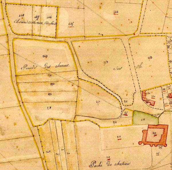 Voici la liste des noms de lieux-dits tels qu’ils apparaissent sur le plan cadastral primitif (j’ai respecté l’orthographe):